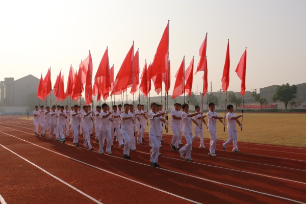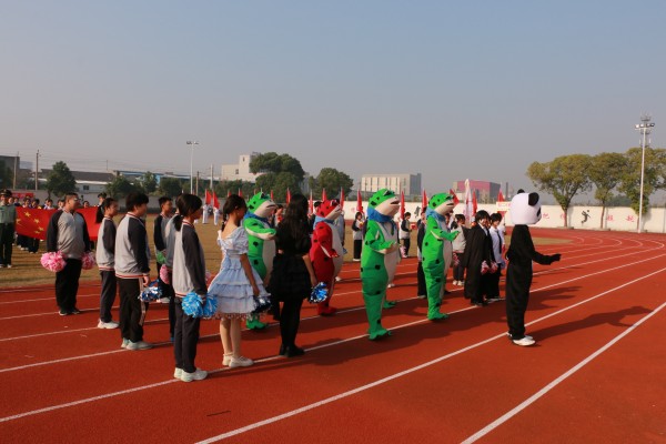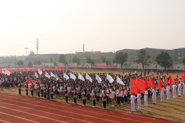 全体师生肃立,奏唱国歌,五星红旗在国歌声中冉冉升起,副校长强陆新致开幕辞,希望同学们全力以赴,享受运动带来的快乐和成长,校长李坚宣布运动会开幕。